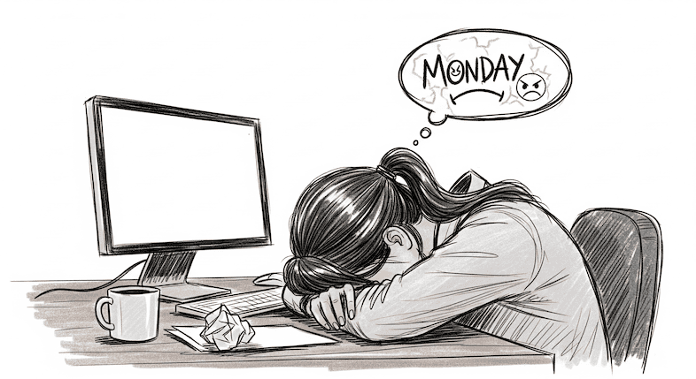 Why do we still pretend they’re part of the regular week? Monday is not a day. Monday is a punishment.